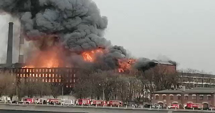 Servicios de emergencia rusos atendieron este lunes una gigantesco incendio en una histórica fábrica ubicada en la ciudad de San Petersburgo, que data desde 1841.