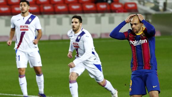 El propio Braithwaite pudo redimirse a los 25, cuando batió al meta del Eibar tras rematar de primeras una asistencia de Junior, sustituto del sancionado Jordi Alba en el lateral izquierdo. Pero de nuevo el VAR, el gran protagonista en el arranque del choque, irrumpía en el partido para anular el tanto por fuera de juego.