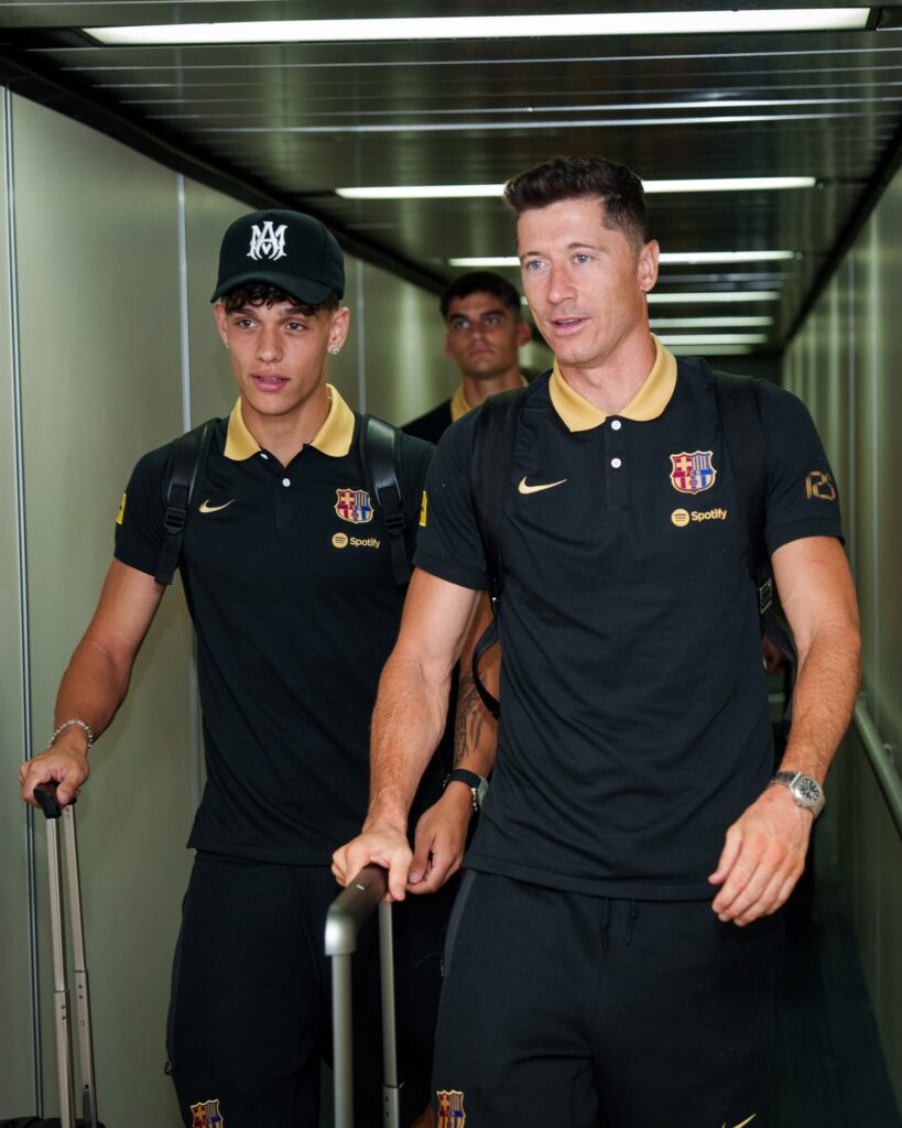 La expedición afronta una ida de unas 9 horas, encabezada por el presidente, Joan Laporta, y los directivos Xavier Puig, Miquel Camps y Joan Soler, aparte de los 31 convocados por el nuevo entrenador, el alemán Hansi Flick, para la gira.