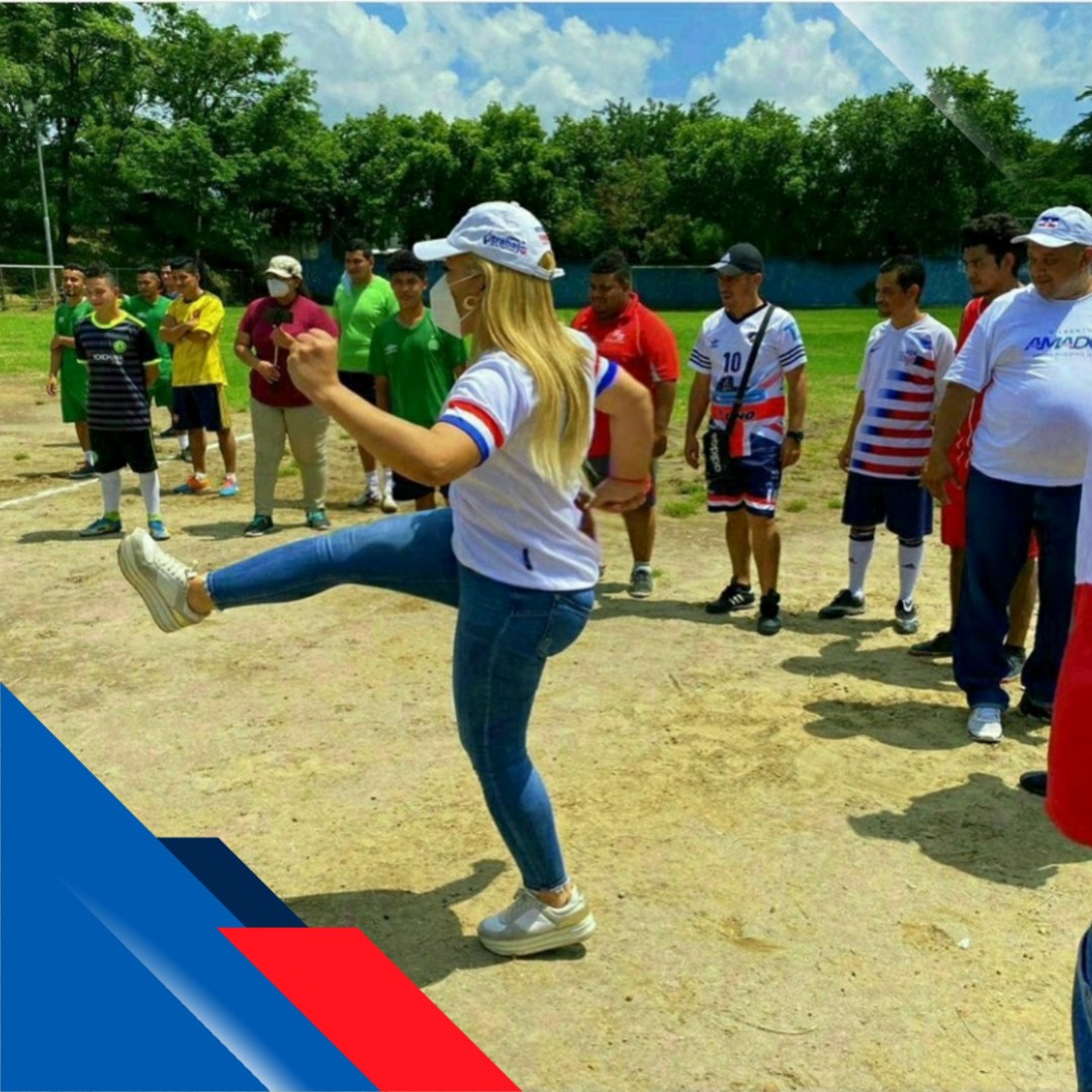 Beatriz Olmedo candidata a diputada por San Salvador es amante del Fútbol y exclusivamente seguidora del “Alianza FC”, este día participó en un torneo relámpago en el municipio de APOPA donde se llevó a cabo un torneo a beneficio de los pobladores.