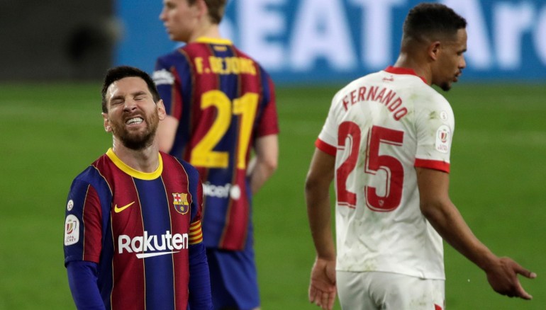 El Sevilla ganó por 2-0 al Barcelona en la ida de las semifinales de la Copa del Rey y logró una valiosa ventaja para la vuelta tras un partido muy serio, en el que acertó ante el gol en momentos decisivos por medio del francés Jules Koundé y del croata Ivan Rakitic, y en el que el marroquí Yassine Bono le amargó la noche a Leo Messi al abortar todos sus intentos.