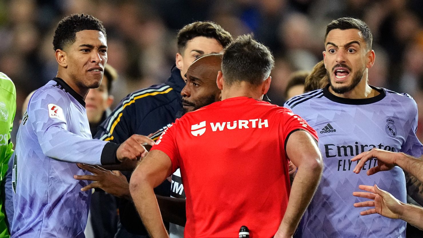 El centrocampista inglés del Real Madrid Jude Bellingham ha sido sancionado este miércoles con dos partidos de suspensión por su expulsión con roja directa en el final del partido liguero del pasado sábado contra el Valencia (2-2).