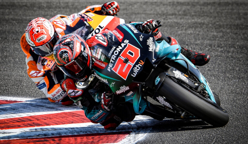 Pecco Bagnaia y Joan Mir le han acompañado en el podio, primero para el campeón mundial este 2020, con Marc Márquez completando su primera carrera en nueve meses en el puesto séptimo.
