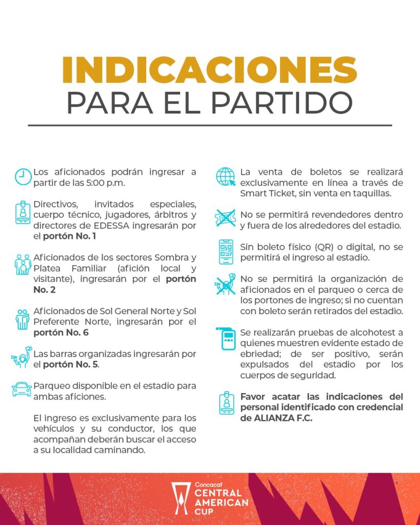 Alianza anunció en sus redes las indicaciones y prohibiciones para el juego de esta noche ante Firpo por Copa Centroamericana en el estadio Cuscatlán