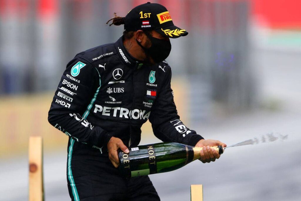 Lewis Hamilton (Mercedes) se impuso este domingo en el Gran Premio de Emilia Romagna, decimotercera prueba del Mundial de Fórmula 1, y su equipo, que hizo doblete por el infortunio del neerlandés Max Verstappen (Red Bull), ganó el título de constructores, el séptimo consecutivo.