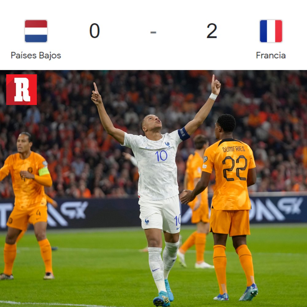 La selección francesa se clasificó para la Eurocopa de Alemania 2024 tras su victoria 2-1 ante Países Bajos, gracias a un doblete de su estrella y capitán Kylian Mbappé, este viernes en Ámsterdam.