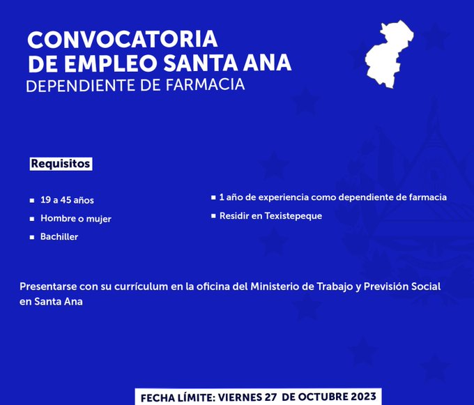Los candidatos interesados deben presentarse en la sede departamental de Santa Ana antes de la fecha límite de aplicación con su hoja de vida en mano. El proceso de selección se llevará a cabo de acuerdo con las políticas y procedimientos establecidos por el Ministerio de Trabajo.