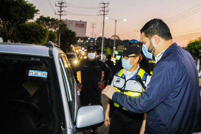 El ministro de Justicia y Seguridad, Rogelio Rivas, verificó esta mañana el cumplimiento de las disposiciones emitidas por el Gobierno para reducir la circulación vehicular, como parte de la cuarentena domiciliar de 30 días decretada el pasado sábado para evitar el riesgo de contagio de COVID-19 en El Salvador.