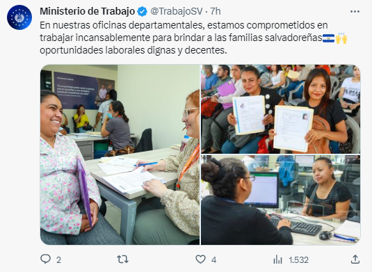 La visión del Gobierno con la sociedad es clara: un El Salvador en el que todos los ciudadanos tengan la posibilidad de acceder a trabajos que les permitan mejorar sus condiciones de vida y las de sus familias.