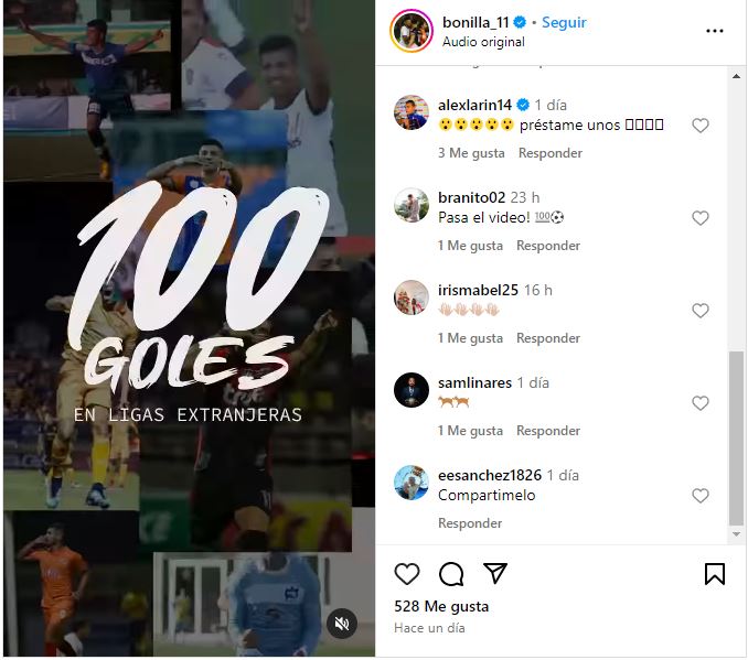 «Agradecido con Dios por todo lo vivido, ha sido un orgullo poder representar a mi país todo este tiempo, no ha sido para nada fácil estar lejos de mi tierra, pero sé que al final todo el esfuerzo, trabajo y dedicación ha valido la pena hasta el día de hoy, escribió Bonilla, acompañado de un rápido video con el conteo de sus goles fuera de nuestro país».