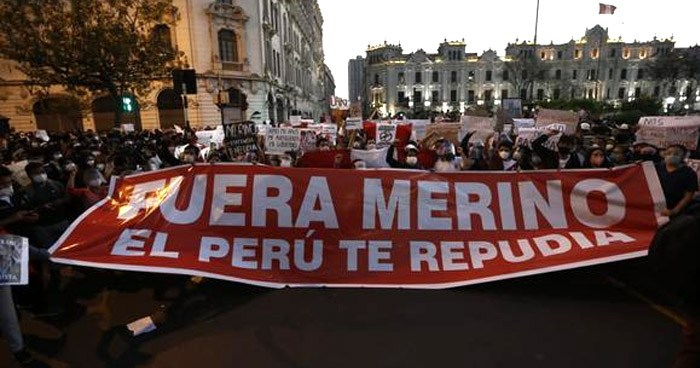 Vizcarra, quien tiene un alto nivel de apoyo ciudadano, cuestionó la legalidad y legitimidad de Merino y llamó a los ciudadanos a protestar pacíficamente.