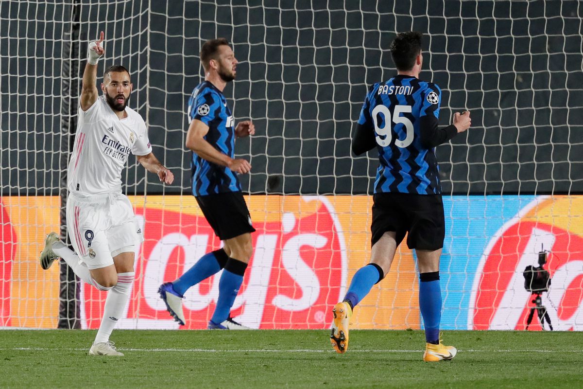 Karim Benzema anotó el primer gol a los de casa en el minuto 25 y luego Sergio Ramos metió el 2-0 en el minuto 33 pero Lautaro Martínez descontó en 35 minutos.