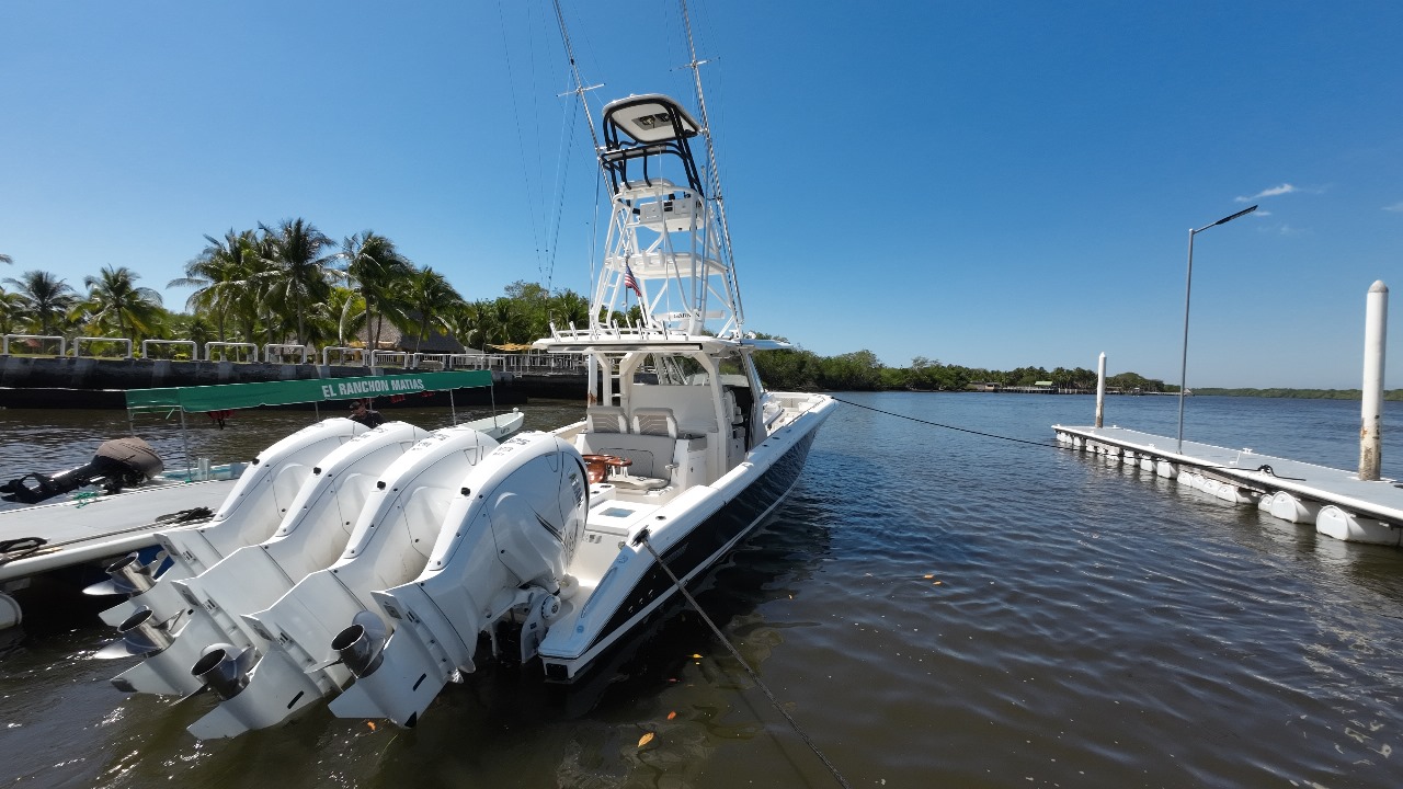 Esta impresionante embarcación cuenta con cuatro motores de cuatro veinticinco, para una navegación excepcional. Tiene capacidad de combustible de 600 galones, está destinada para largas travesías y aventuras en el mar.