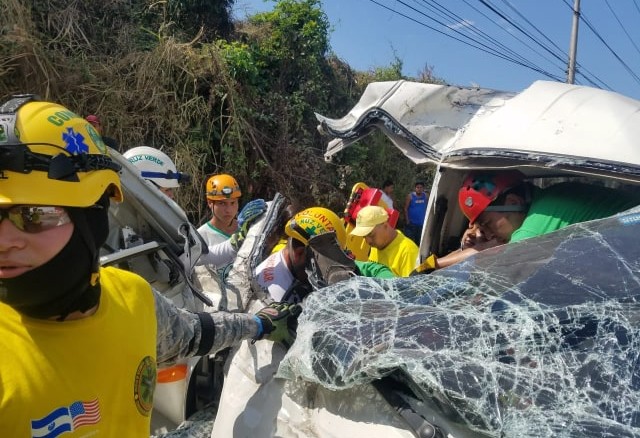 La lesionada fue identificada como Elizabeth Carolina Sorto, de 32 años de edad, quien quedó atrapada en uno de los automotores y tuvo que ser rescatada por los socorristas.